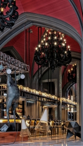 А таинственная мистика готики ресторана с большим пространством, высокими окнами, роскошными витражами и обилием света, прекрасна для торжественных мероприятий.