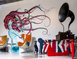 Интерьер творческого офиса дизайн студии Brain Twister в Алматы